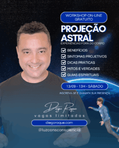 No dia 13/09, às 13h (sábado), vou realizar um Workshop On-line Gratuito sobre Projeção Astral, trazendo ensinamentos práticos e espirituais para quem deseja compreender melhor esse fenômeno.
